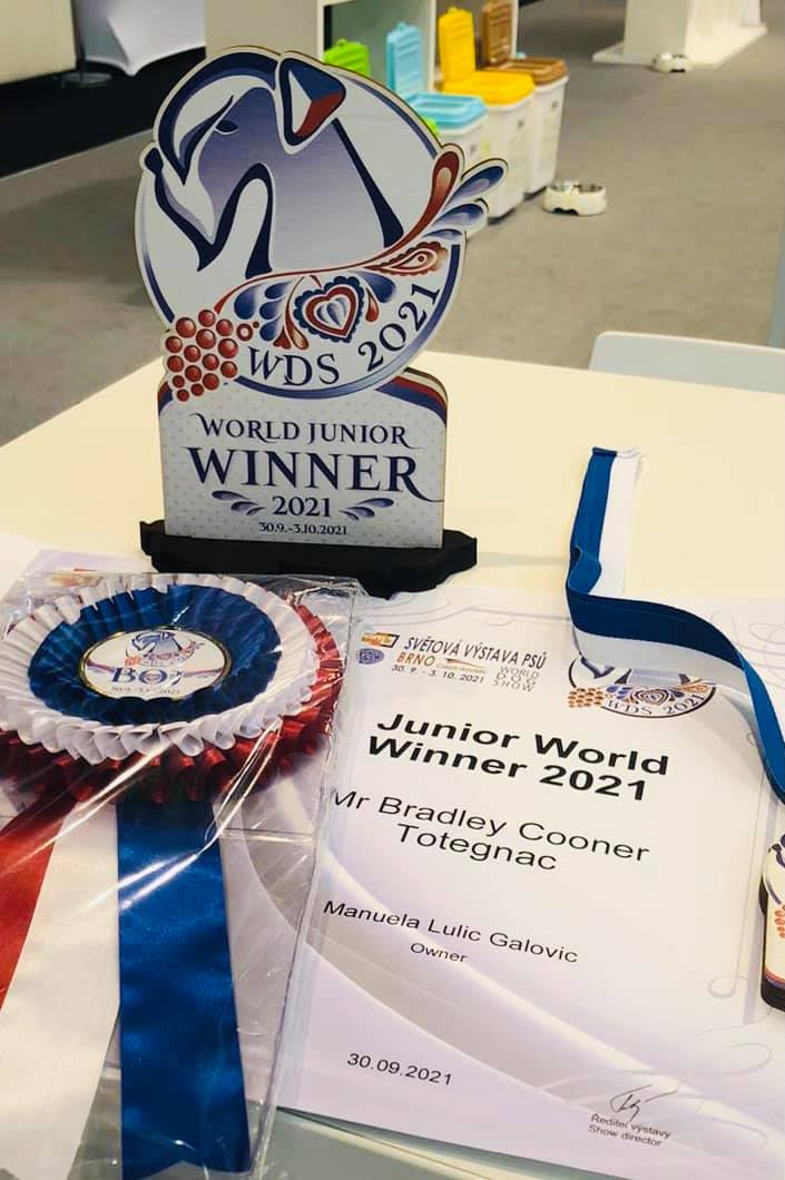 Titulu najljepšeg mladog goniča rakuna na svijetu Mr Bradley Cooner Totegnac Mile osvojio je u češkom Brnu na velikoj Svjetskoj izložba pasa. Titulu mu je dodijelio češki sudac Šimek František.