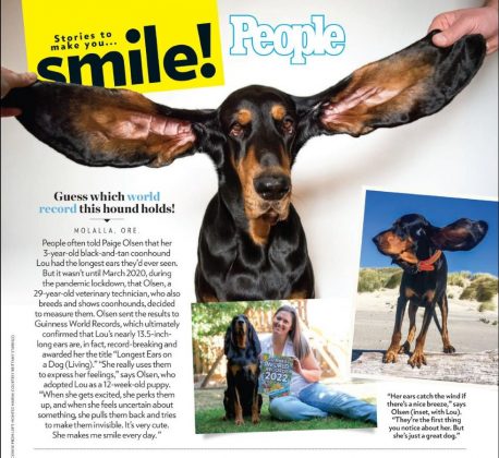 Na naslovnici Guinnesove knjige svjetskih rekorda za 2022. godine nalazi se pas s najdužim ušima na svijetu. To je ženka američke pasmine koja se punim imenom zove crni gonič rakuna s paležom (Black and Tan Coonhound), zovu je Lou i svako joj je uho dugačko 34 centimetra.