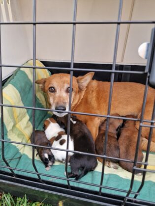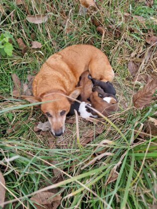 Ovoj umiljatoj kujici, staroj oko šest godina, tko zna koje je već ovo leglo. I tko zna tko je neodgovorno ljudsko biće koje o njoj nije skrbilo godinama. Tako ni sada. Nezbrinuta, sama i ostavljena na zagrebačkom području u polju je po kiši i hladnoći okotila šest štenaca. Brižna ih je majka grijala koliko je mogla.