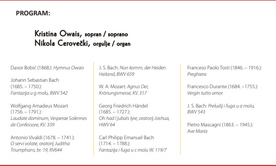 Sopranistica Kristine Owais i orguljaš Nikola Cerovečki nastupit će 2. listopada u župnoj crkvi sv. Nikole u Krapini.