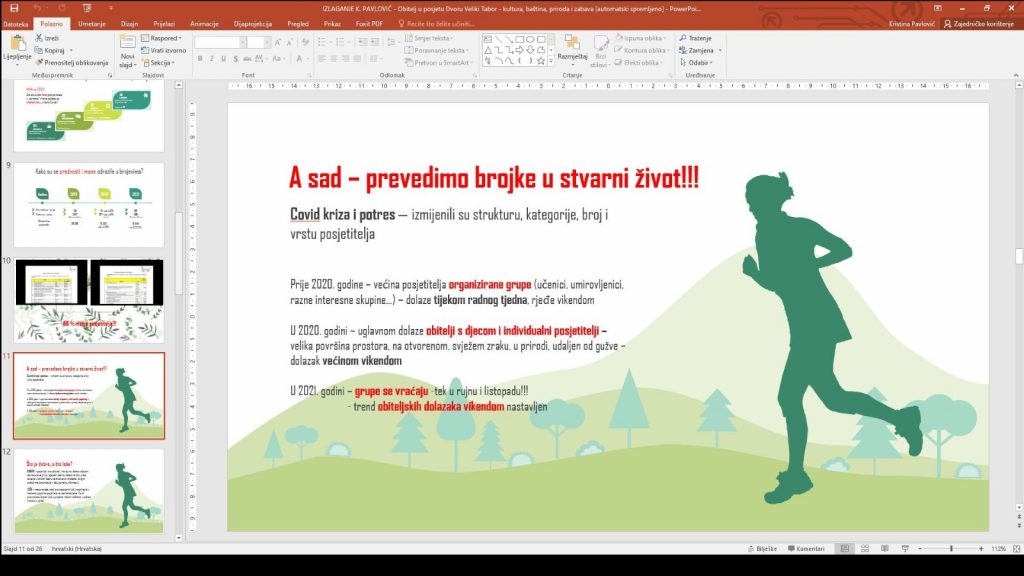 Sudionicima konferencije o muzejskim posjetiteljima Dvora Veliki Tabor, o radu s njima, potrebi prilagođavanja muzejskih programa u pandemijsko vrijeme i o uspjesima koji su postignuti, usprkos teškoćama i posebnim okolnostima u kojima se radilo u protekle dvije godine, govorila je velikotaborska muzejska pedagoginja, mag. Kristina Pavlović.