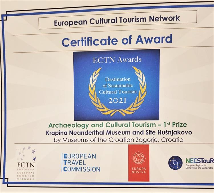 Muzej krapinskih neandertalaca je s Nalazištem Hušnjakovo prestižnu nagradu ECTN Awards 2021. osvojio je  u kategoriji Archaeological Sites and Museums as Cultural Tourism Attractions, Arheološka nalazišta i muzeji kao atrakcije kulturnog turizma.