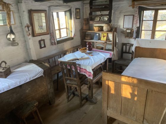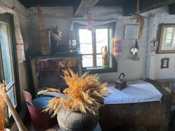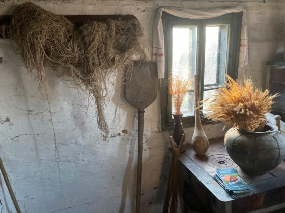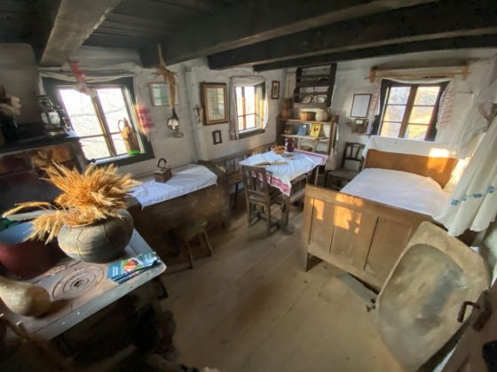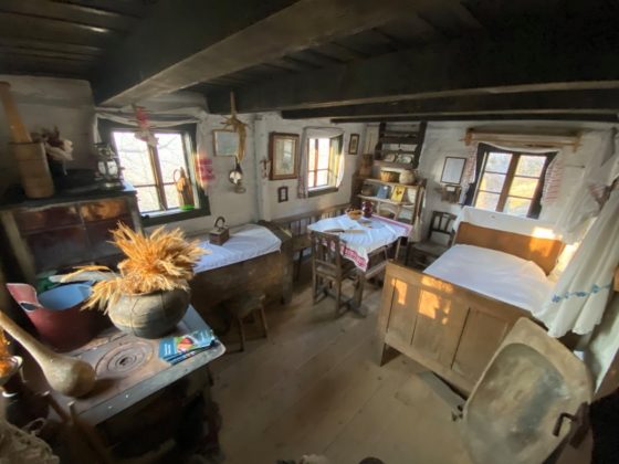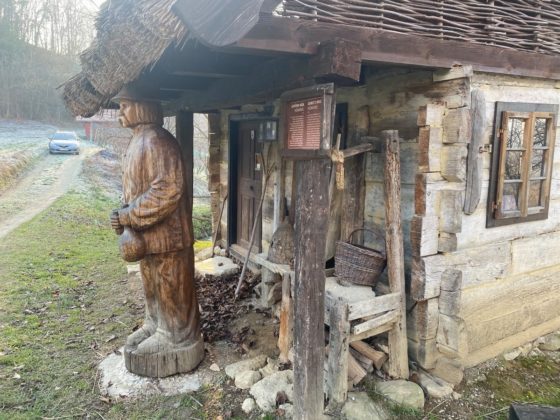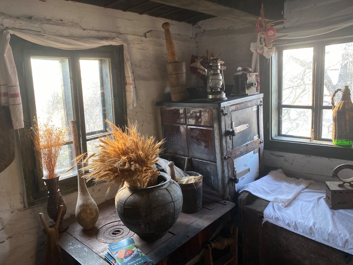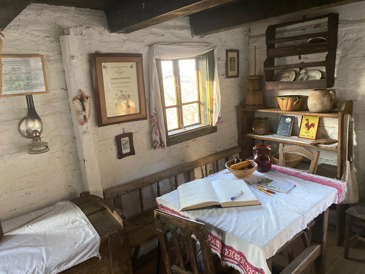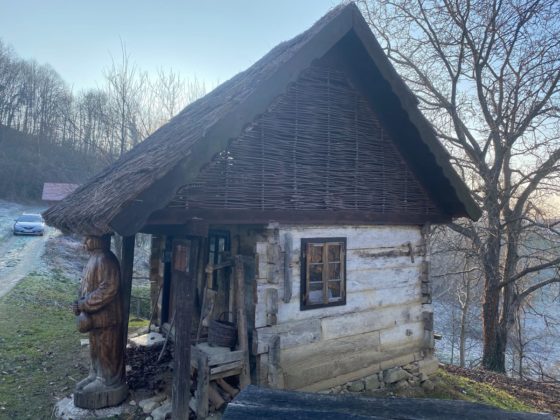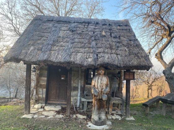 Hižica je izgrađena od hrastovine i slame, baš kao što se nekad gradilo. Ispred je dvorišče, kip Matije Gupca, žrvanj za mljevenje kukuruza, imela za sreću, stara pletena košnica za pčele… Hižica i iznutra izgleda kao da ste ušli u 1573. Stol, stolci, kupice, peharček, metalni tanjuri, pegla, mužar, posteljina, lampuš…