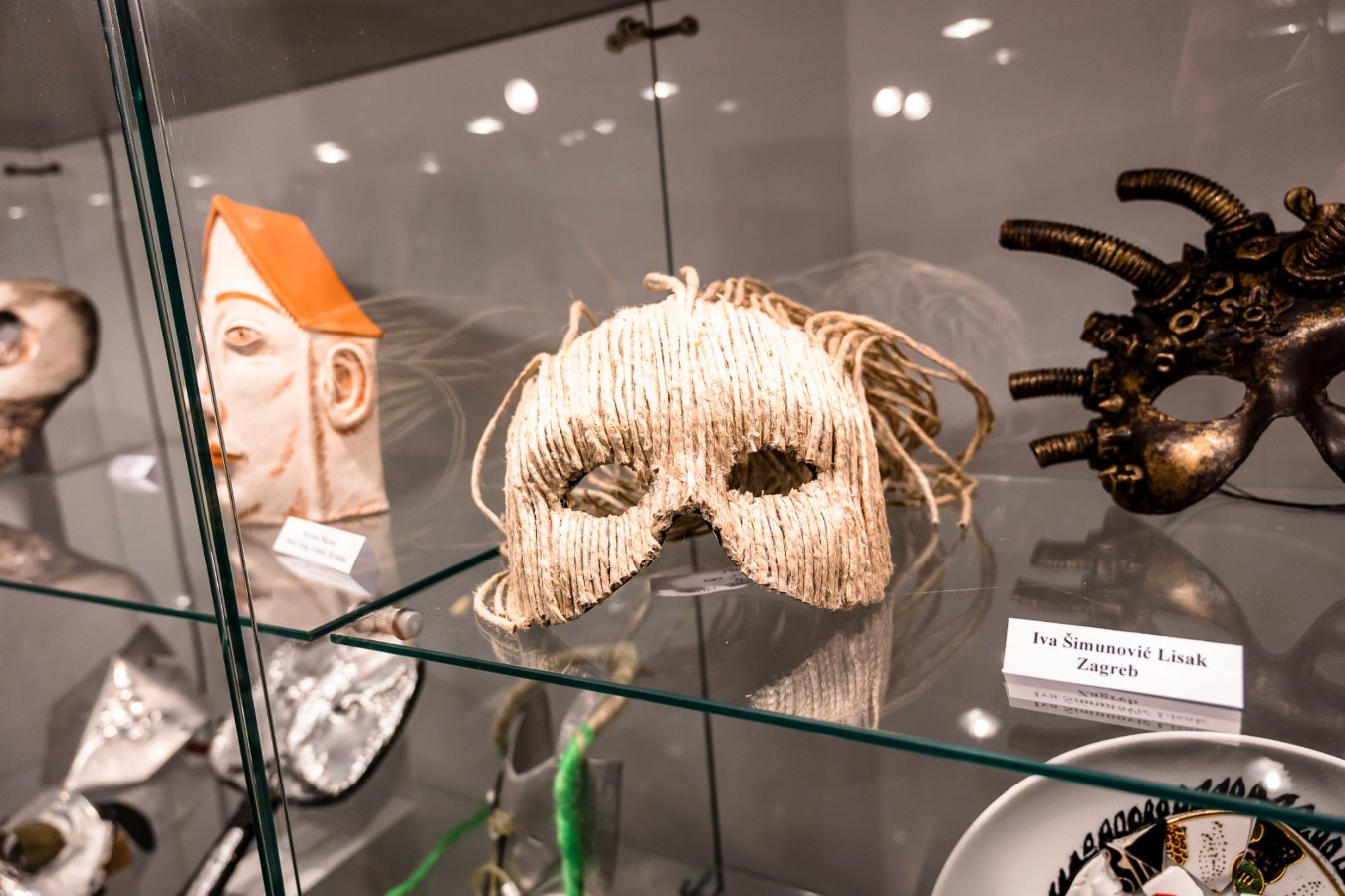 Maske su rađene različitim tehnikama i od različitog materijala, gline, vune, tekstila, drva, papira, metala, slikane uljem na platnu i akvarelu, rađene u origami tehnici, a tu su i fotografije venecijanskih maski i riječkih dondolaša.