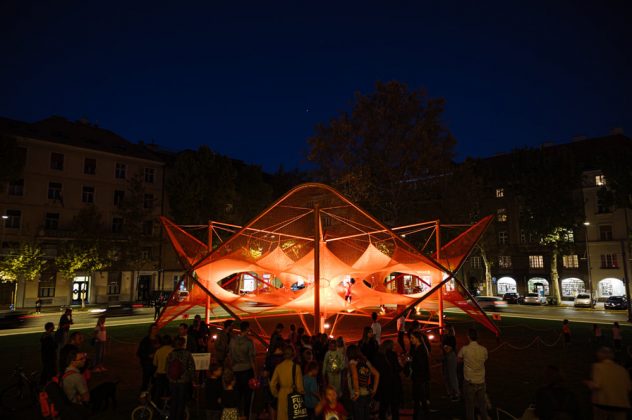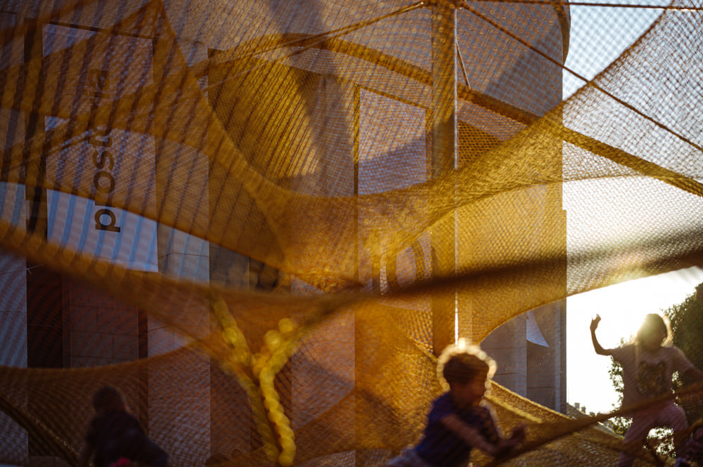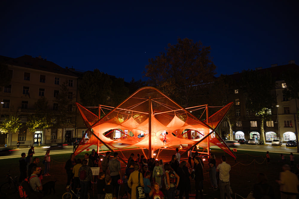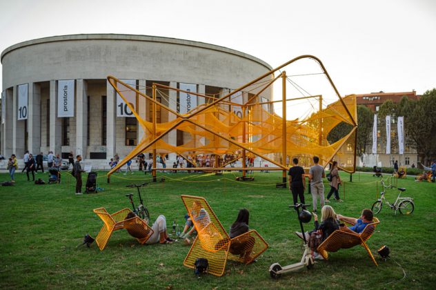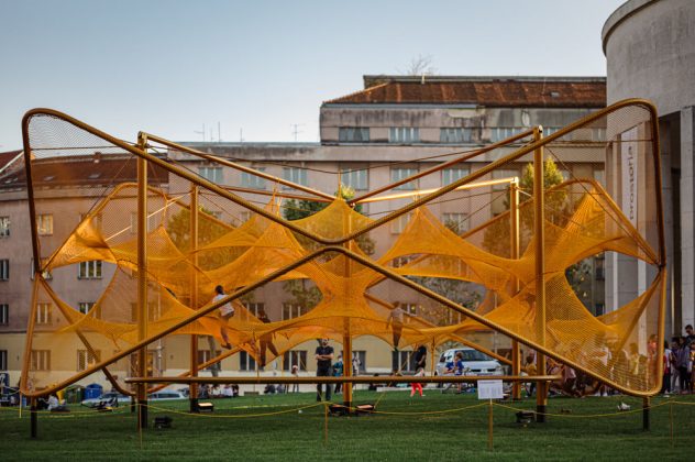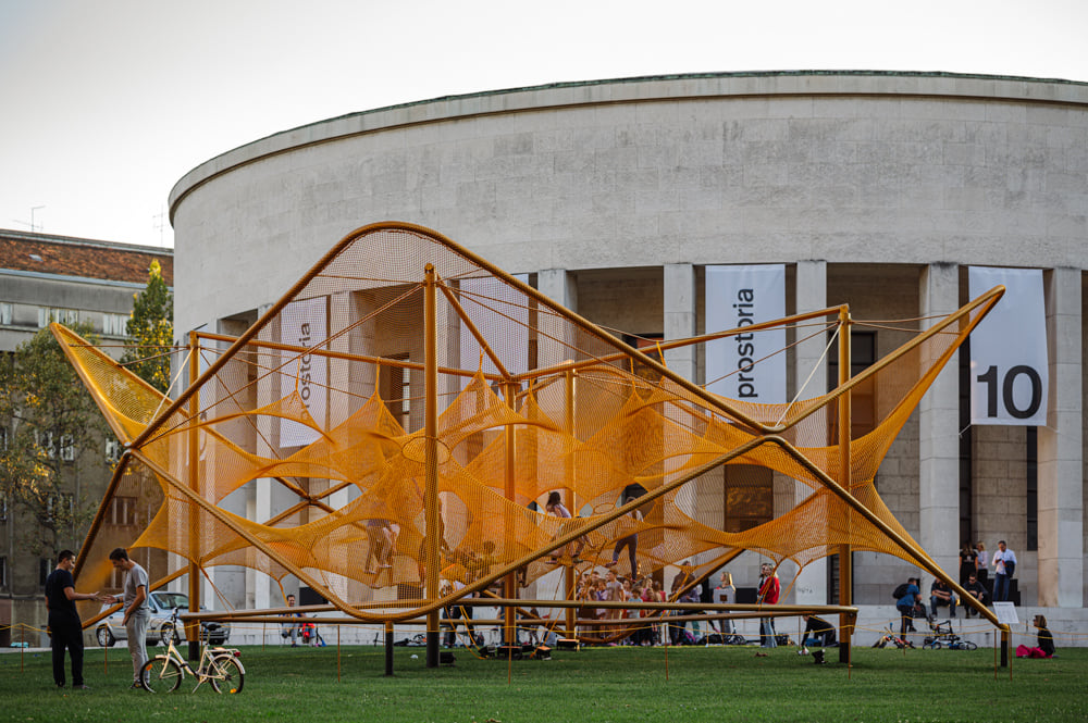 Kako Prostoria odskače u svom dizajnu, tako su poseban ‘potpis’ dali i izložbi i privremenom instalacijom Prostoria Net. Umjetnička je to instalacija namijenjena za druženje, dok su je autori zamislili kao veliki urbani namještaj. Iza koncepta stoji hrvatsko-austrijski kolektiv Numen/ForUse s kojim Prostoria godinama surađuje, a kojem ovo nije prva ovakva mrežasta instalacija koja je,inače, dio njihovog identiteta.