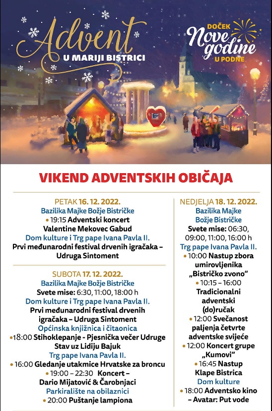 Četvrti vikend Adventa u Mariji Bistrici obilježit će tradicionalno puštanje lampiona, koncerti, adventski (do)ručak…