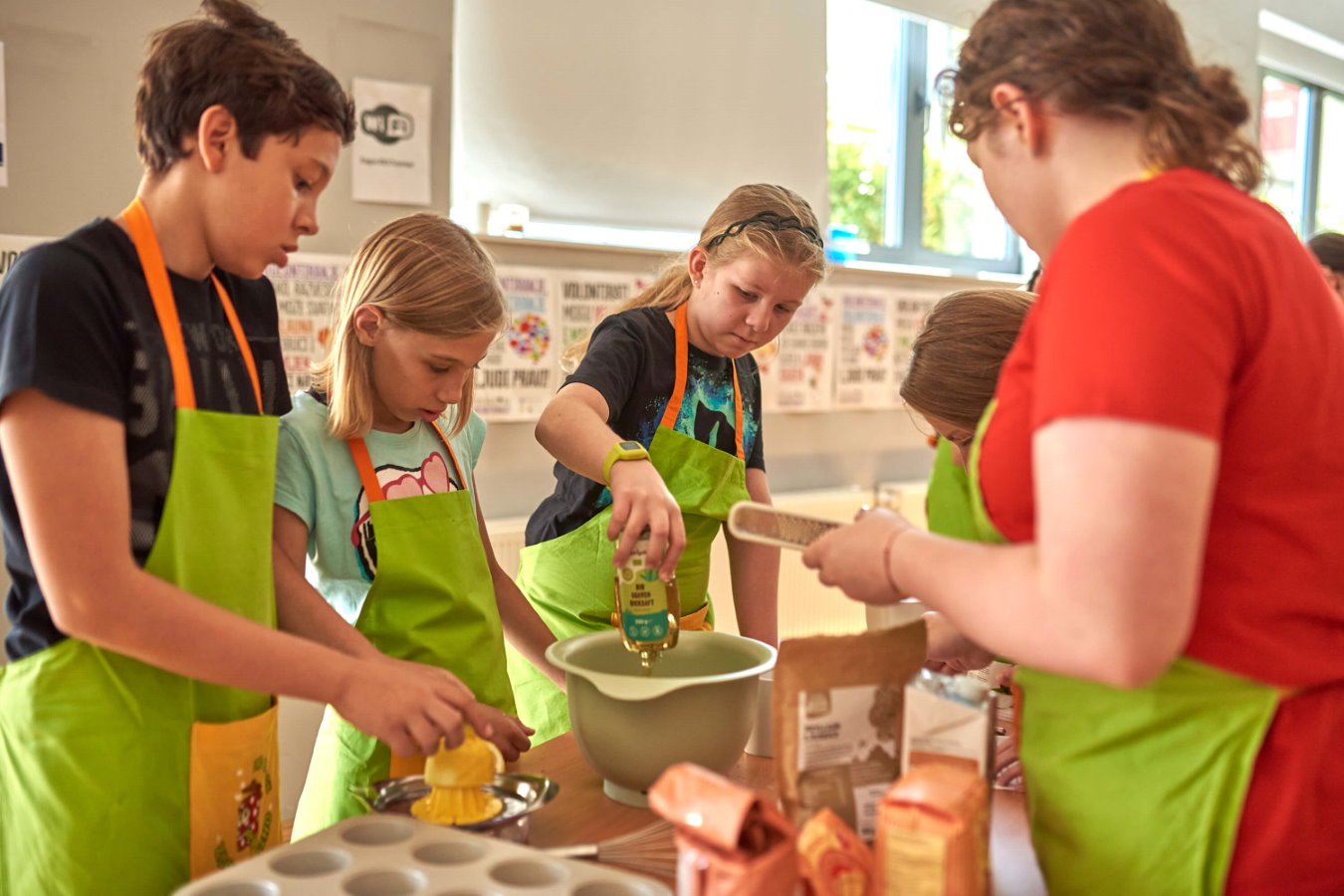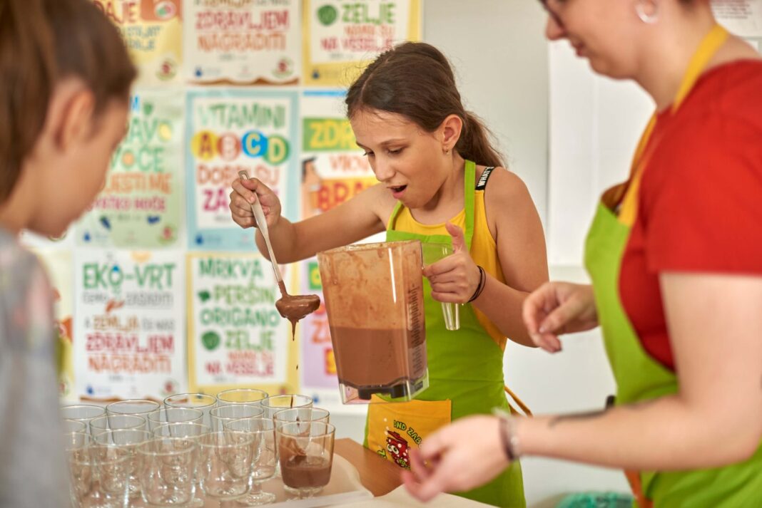 Kao primjer zdravog i energetski bogatog doručka i užine napravljeni su krekeri sa sjemenkama i kakao napitak. Puni energije djeca su u kuharskoj akciji tijekom radionice skuhala prefina jela, od predjela do čak dva deserta. Na proljetnom meniju našli su se krem juha od graška i brokule, proljetne rolice s povrćem i preljevom, meksički burgeri sa šalšom od rajčice i tofunezom, proljetna salata, kremica od jabuka i sokom od naranče te datulje omotane u čokoladu.