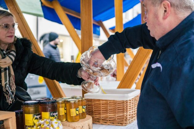 Krapinski glavni trg bio je prepun. Pojeo se lovački gulaš, pa onaj s gljivama, popila se koja čaša vina, rakijica, isprobavao se med zagorskih pčelara. Kupovali su se proizvodi lokalnih OPG-ova, malih proizvođača i udruga.