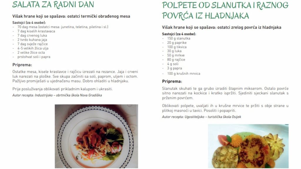 Potražite recepte za viškove hrane od blagdana za nove ideje. Od ostataka obroka mogu se pripremiti zanimljiva jela, a korištenjem ostataka prethodnih obroka, osim što sprečavate bacanje, skraćujete i vrijeme potrebno za pripremu obroka. Neke od ideja za nove obroke pripremljene od viška hrane možete pronaći u knjižici recepata ‘Skuhat ću, neću baciti‘. Objavilo ju je Ministarstvo poljoprivrede, a recepte su osmislili srednjoškolci iz raznih strukovnih škola u Hrvatskoj.