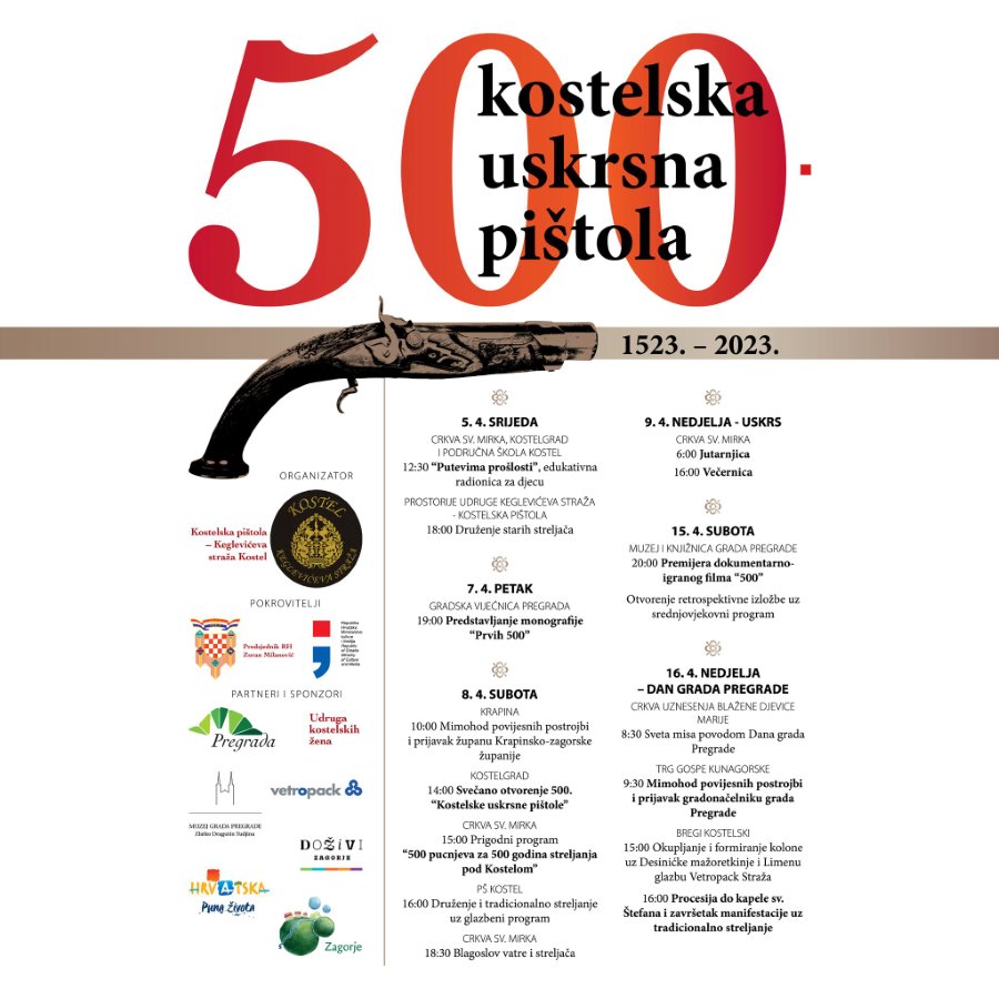 – Na Veliku srijedu okupljamo najstarije živuće streljače, koji nam pričaju o prošlosti kako bismo mi mogli te priče nastaviti pričati budućim naraštajima. Na Veliki petak predstavit ćemo monografiju u kojoj su sve stare fotografije s prijašnjih izdanja ove manifestacije, ali i priče starih streljača. Na Veliku subotu u goste nam dolazi osam povijesnih postrojbi i s njima odlazimo u Krapinu na prijem kod župana, a potom idemo u Kostel. Jedna ekipa odlazi na Kostelgrad, gdje će biti službeno otvorenje manifestacije, a potom se spuštamo do Crkve sv. Emerika gdje ćemo izvesti 500 pucnjeva bez prekida – rekao je u Pregradi Milan Flegar te najavio i milenijsku fotografiju streljača.