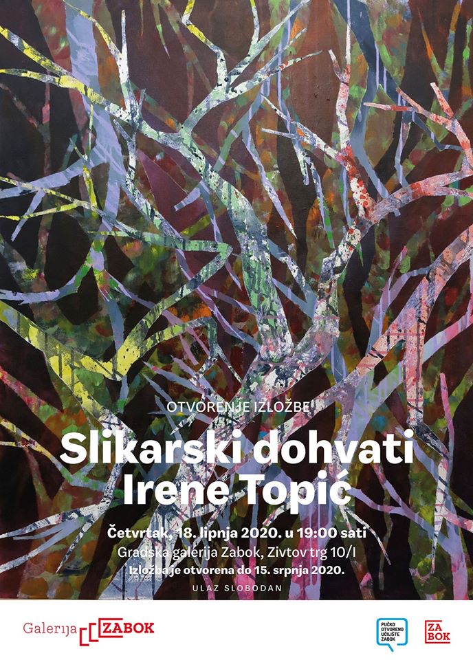U četvrtak, 18. lipnja u 19 sati u Gradskoj galeriji Zabok otvara se izložba Irene Topić. Izložba se može razgledati do 15. srpnja
