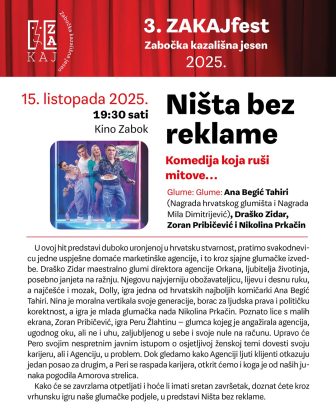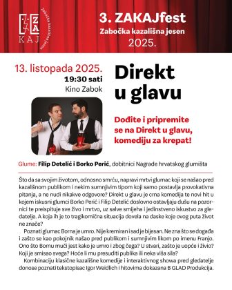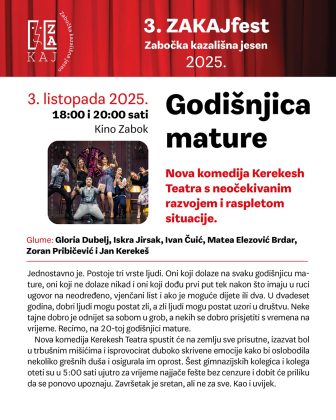 ZAKAJfest trajat će od od 3. do 15. listopada. Bit će izvedeno 16 predstava. Zabočku kazališnu jesen otvorit će Kerekesh Teatar s predstavom Godišnjica mature. Do 15. listopada dolaze još Gola u kavezu, Sastavljamo vladu!, Direkt u glavu, Ništa bez reklame.