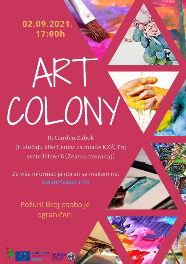 Likovnu radionicu organizira Mreža udruga Zagor sa ESS volonterkom iz Španjolske u sklopu projekta ‘Dva volontera za lokalnu zajednicu 2.0’ te u suradnji sa Savjetom mladih Grada Zaboka. Projekt se provodi u okviru Europskih snaga solidarnosti.