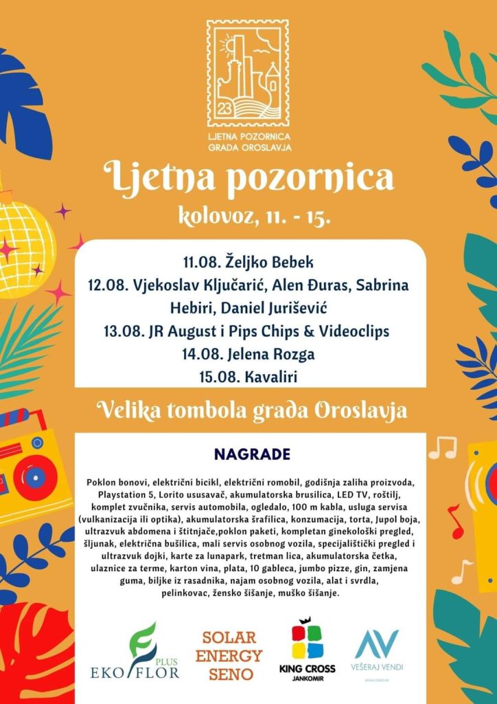 Najveća Ljetna pozornica u Zagorju i ove je godine u Oroslavju. Velika glazbena imena i najjača tombola u Hrvatskoj.