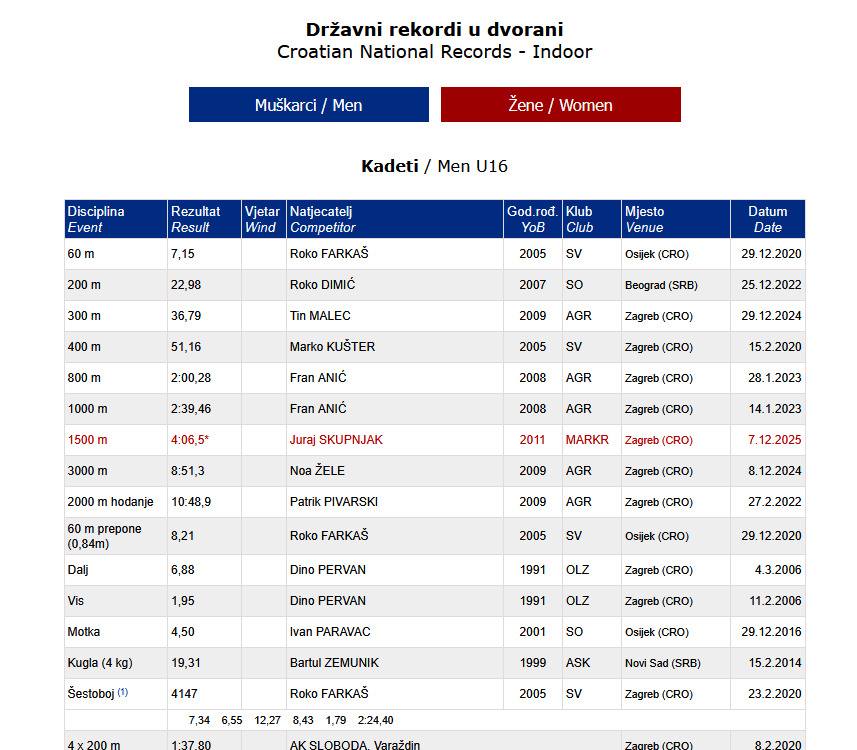 Novi rekord sada iznosi impresivnih 4:06,5, a ponosni vlasnik tog rezultata je Juraj Skupnjak, član TK Maraton Krapina. On je fantastičnom utrkom pokazao nevjerojatnu upornost, snagu i talent te zasluženo upisao svoje ime u povijest dionice na 1500 metara.