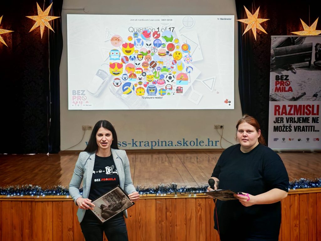 U 2025. godini aktivnosti su provedene u svih devet srednjih škola na području županije, gdje je 851 učenik sudjelovao u radionicama s ‘pijanim’ naočalama, jednim od najučinkovitijih edukativnih alata koji mlade izravno suočava s promjenom percepcije uslijed konzumacije alkohola. Održano je i devet predavanja, koja su obuhvatila 416 učenika, a teme su se kretale od fizioloških učinaka alkohola do analiza stvarnih prometnih nesreća.