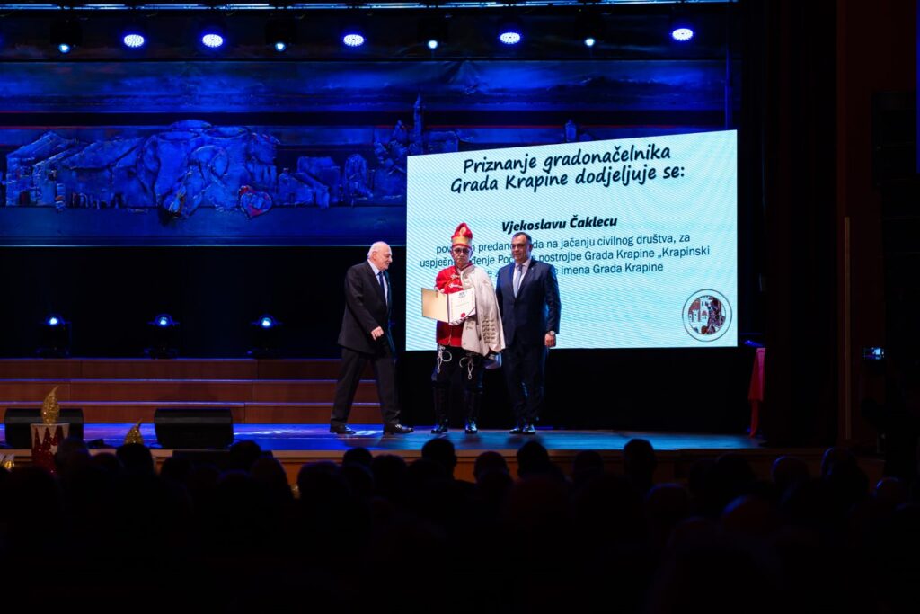 Priznanje gradonačelnika dobili su Vladimir Vidović za osobit doprinosa u unapređenju lokalne zajednice i Vjekoslav Čaklec za predani rad na jačanju civilnog društva, za uspješno vođenje Počasne postrojbe Grada Krapine, Krapinskih Ilirca te za promicanje imena grada.