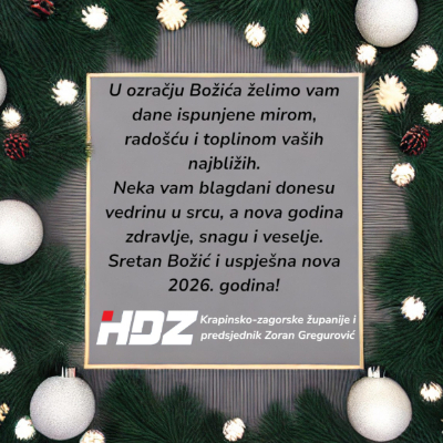 Sretan i blagoslovljen Božić želi vam Županijski odbor HDZ-a Krapinsko-zagorske županije i predsjednik Zoran Gregurović.