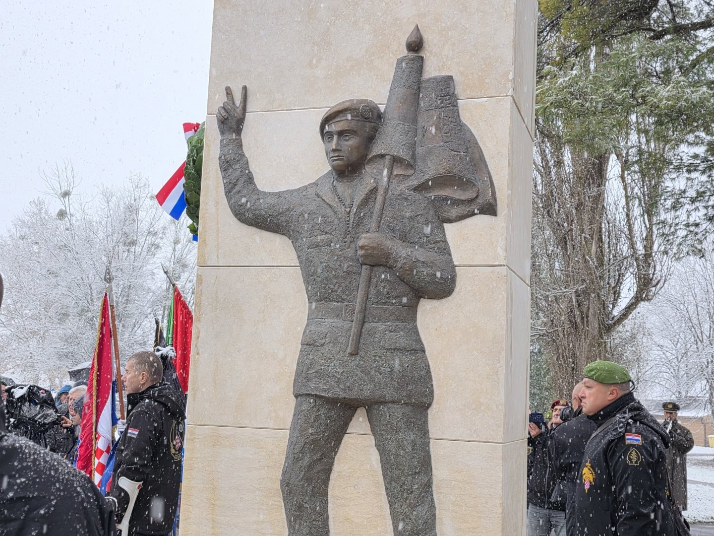 U najpoznatije selu na svijetu na ovu veliku svečanost došli su i ministar branitelja Tomo Medved, prvi zapovjednik PJP Kumrovec Neven Martić, izaslanik predsjednika Hrvatskog sabora, saborski zastupnik i gradonačelnik Krapine Zoran Gregurović, župan Željko Kolar, predstavnici udruga proizašlih iz Domovinskog rata, a čijim postrojbama u čast je i podignut ovaj spomenik…
