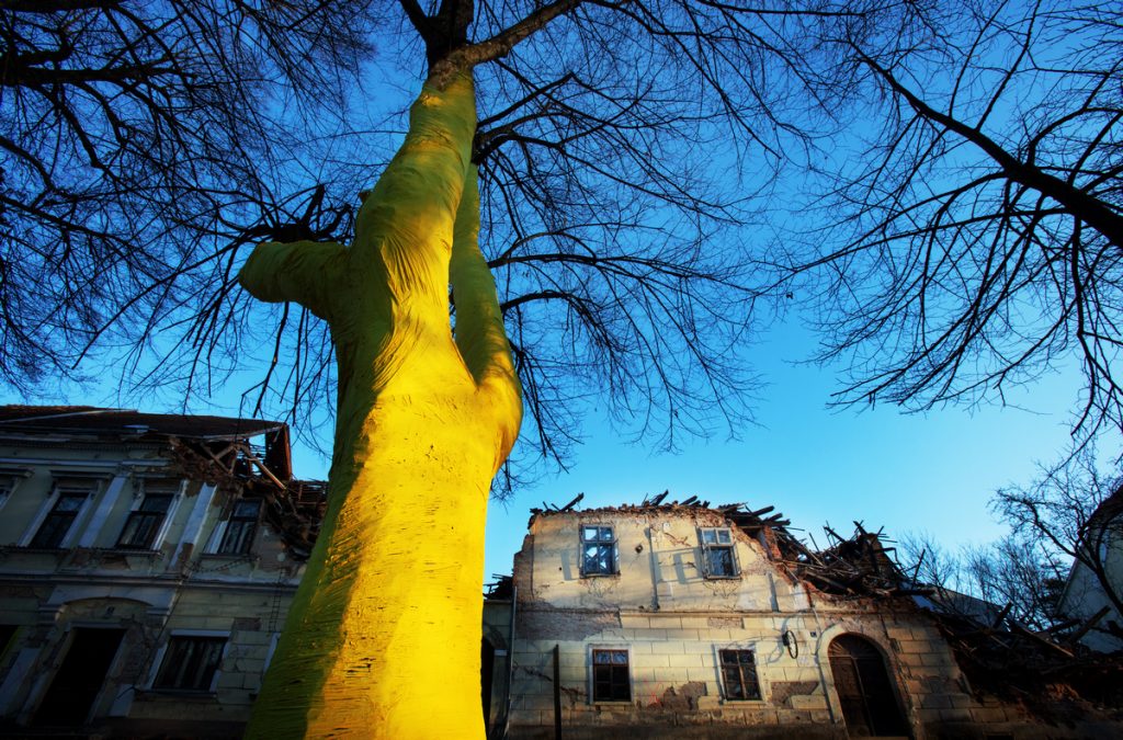Jedno je stablo u petrinjskom parku obojeno eko žutom bojom koja simbolizira nadu i optimizam, toliko potrebnu ovom području i njegovim stanovnicima.