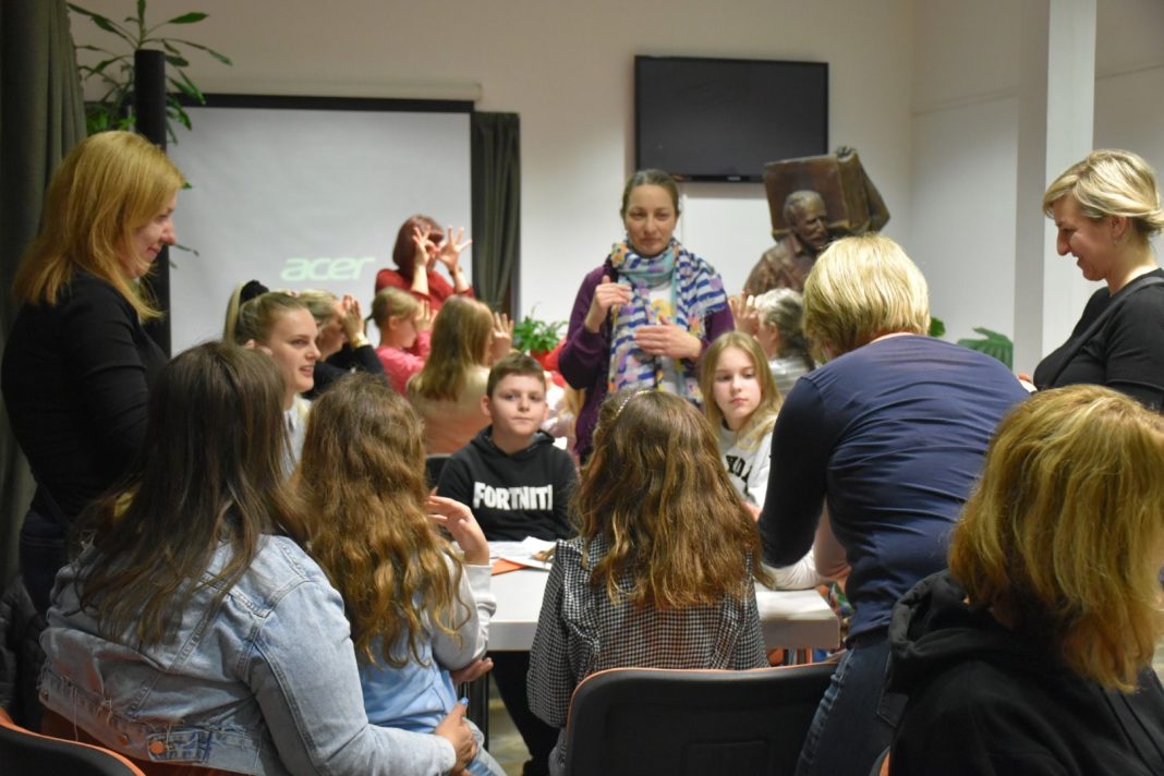 Radionice vodi Marijana Brcko, majka gluhe djevojčice (8), koja je znakovni jezik počela učiti prije tri godine kada je njezina kći potpuno oglušila. Kaže nam, i ona i gluha kći i cijela obitelj bili su primorani početi učiti jezik koji njezino dijete jedino može razumjeti.