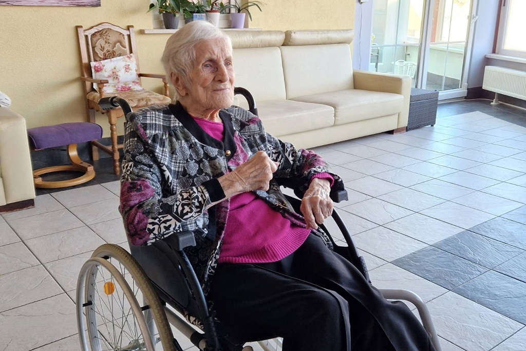 Baka Ivka rođena je 1923. u Loboru, ima jednu kćer, tri unuke i šest praunuka. Udala se s 25 godina za Božidara, udovica je ostala prije 30, a u domu je osam godina. Prvo je bila u Turnišću gdje je pala i više nije mogla hodati pa ju je kći Božena, koja se pridružila rođendanskom slavlju, premjestila u Orhideju. Tu joj je odlično, svjedoči obitelj. Iako je u kolicima i slabije čuje, dobrog je zdravlja, uvijek nasmijana i vesela.