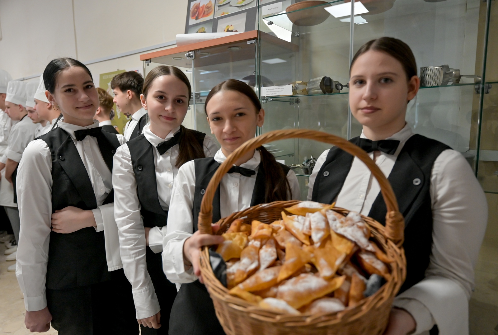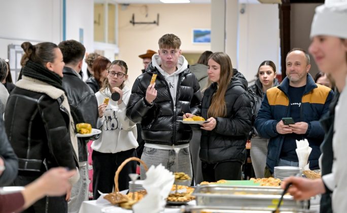 – Danas smo pripremili klasičnu sarmu, krpice sa zeljem, restani krumpir s krvavicama, a uz to i vegetarijansku sarmu. Tu su varaždinski klipiči i klipiči od buče, štrukli od krumpira, s kiselim zeljem i sirom, kiflice od buče… – nabrajao je budući kuhar Nikša Kosec, učenik drugog razreda Gospodarske škole u Varaždinu, koji je otkrio da je oduvijek volio kuhati, a jednostavno je osjetio da je to njegov poziv i zanimanje kojim se mora baviti.