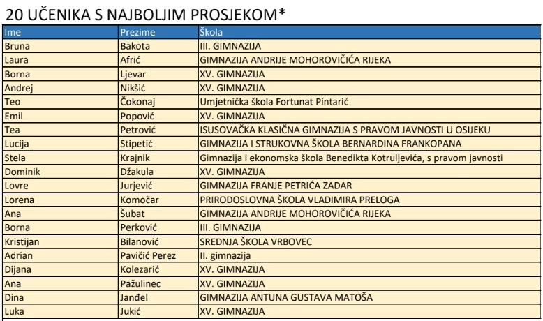 Najbolje ovogodišnje maturante za izniman uspjeh na nedavno završenoj Državnoj maturi nagradilo je Ministarstvo znanosti i obrazovanja. Među njima je i Zagorka Dina.