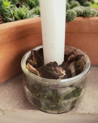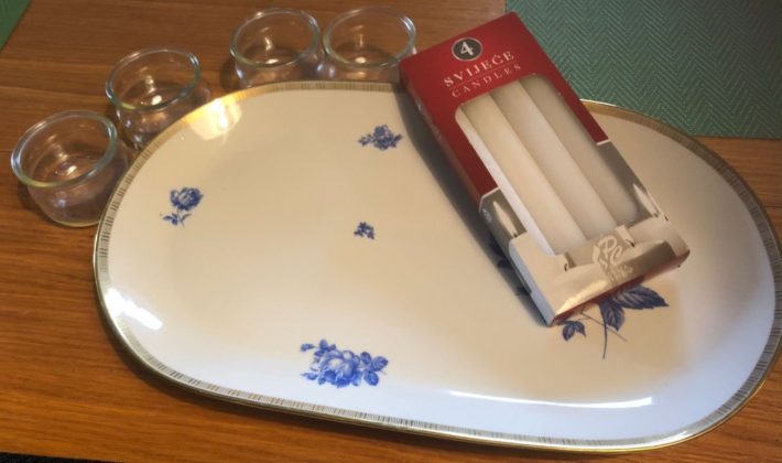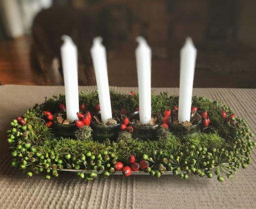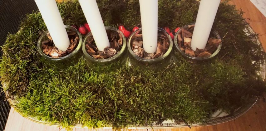 ‘Odlučila sam ga složiti na keramičkom pladnju za posluživanje, no jednako tako možete koristiti i tacne, tanjure, što god vam odgovara. Uz to, trebat će vam četiri iskorištene male staklenke (moje su one s kojima me frendovi redovito snabdijevaju nakon što pojedu jogurte iz njih) i četiri svijeće koje lijepo stanu u sredinu staklenke. Boju i veličinu birate sami’, piše Jasmina na zanimljivom blogu https://luckyhomeideas.com/
