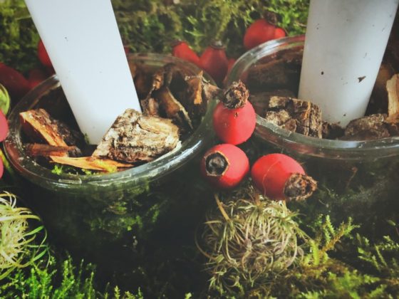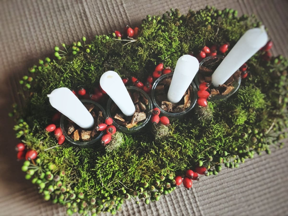 Za aranžman joj je osnova bila mahovina, ostalo je bila improvizacija, divlji šipak i neke zanimljive bobice. Prirodni materijal bez problema, kaže, možete prikupiti i u gradu, jer parkovi su puni mahovine i svakakvih zanimljivih biljaka koje vam mogu poslužiti kao dekoracija.