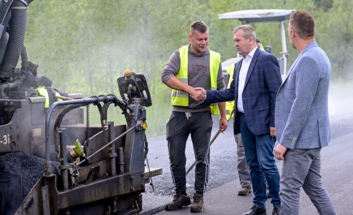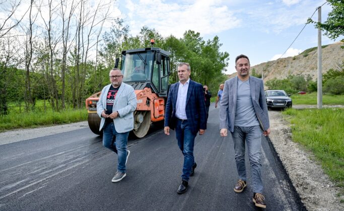 Župan je u pratnji načelnika Nenada Horvatića i ravnatelja ŽUC-a Tomislava Osonjačkog obišao radove na županijskoj cesti koja spaja dva kamenoloma. Lani je asfaltirano kilometar i pol, a ove godine još 1,1 kilometar.