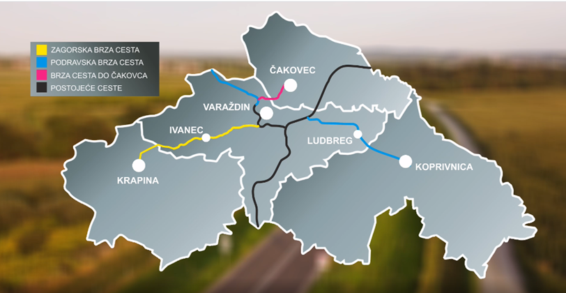 Iako se promovira izgradnja brze ceste Varaždin – Ivanec – Lepoglava – Krapina, najmanje desetljeće bit će potrebno da bi se Varaždin spojio s Krapinom.