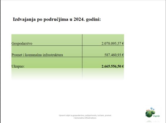 Za gospodarstvo i komunalnu infrastrukturu 3,3 mil. eura