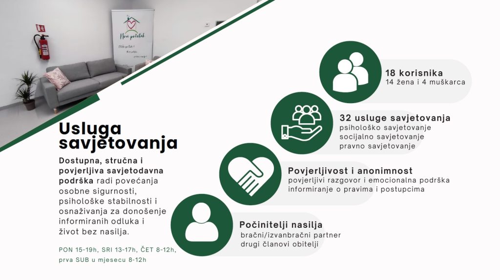 – Stručno je i povjerljivo, a savjetovanje je psihološko, socijalno i pravno. Za svaku obitelj radi se procjena rizika, osobni plan sigurnosti i osnaživanja te se kontinuirano prati napredak tijekom korištenja usluga – istaknula je ravnateljica.
