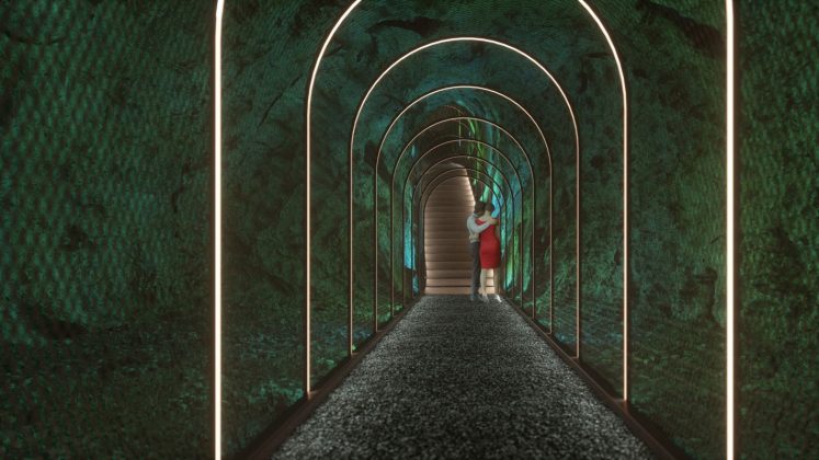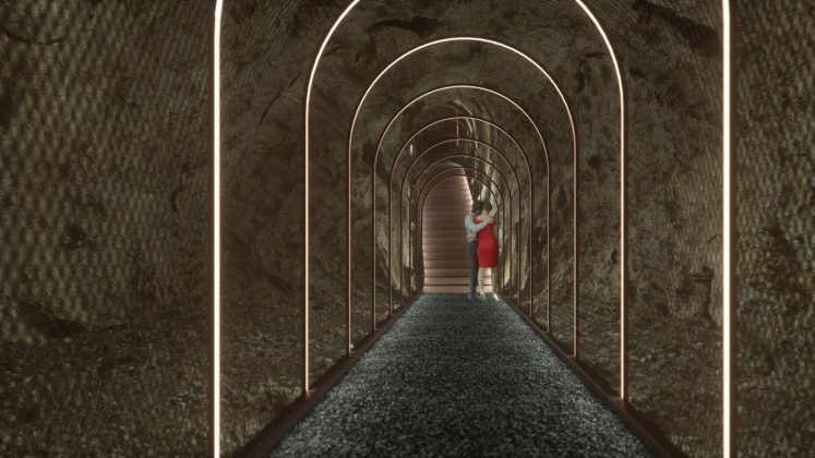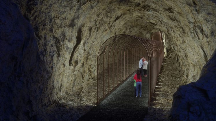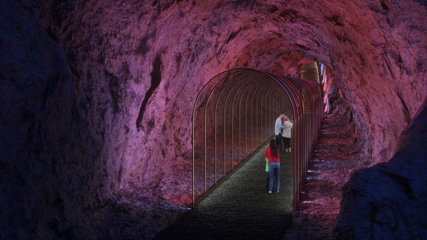 Neposredno uz Palas, u postojećoj pećini dužine oko 60 metara, predviđa se zvučno-svjetlosna instalacija u formi polutransparentnog tunela koji postaje dio sustava pješačkih staza na cijelom lokalitetu.