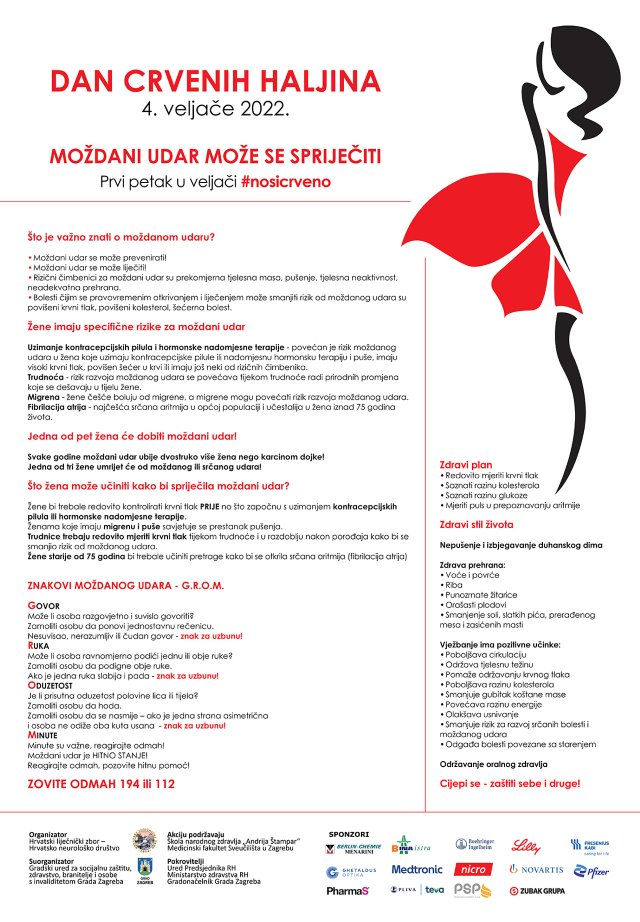 Njezin je naziv Dan crvenih haljina. Petak, 4. veljače na Franjevačkom trgu u Varaždinu. Cilj je podizanje svijesti o moždanom udaru te specifičnosti moždanog udara kod žena.