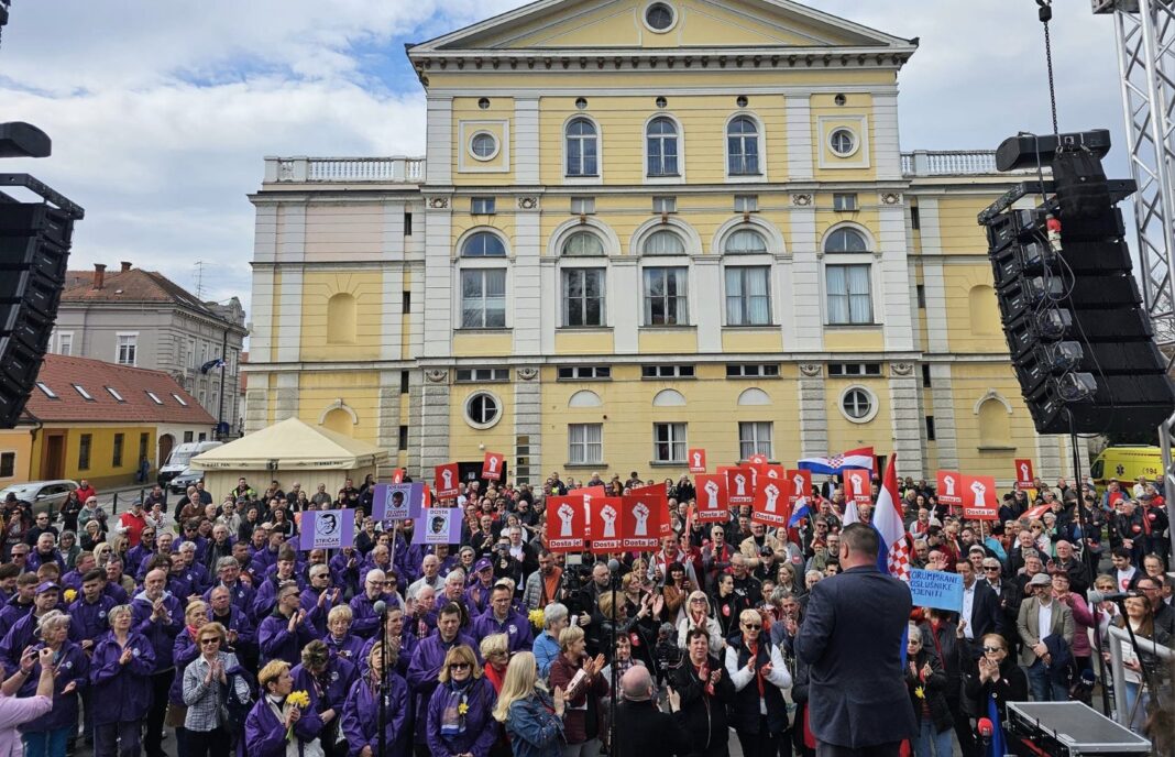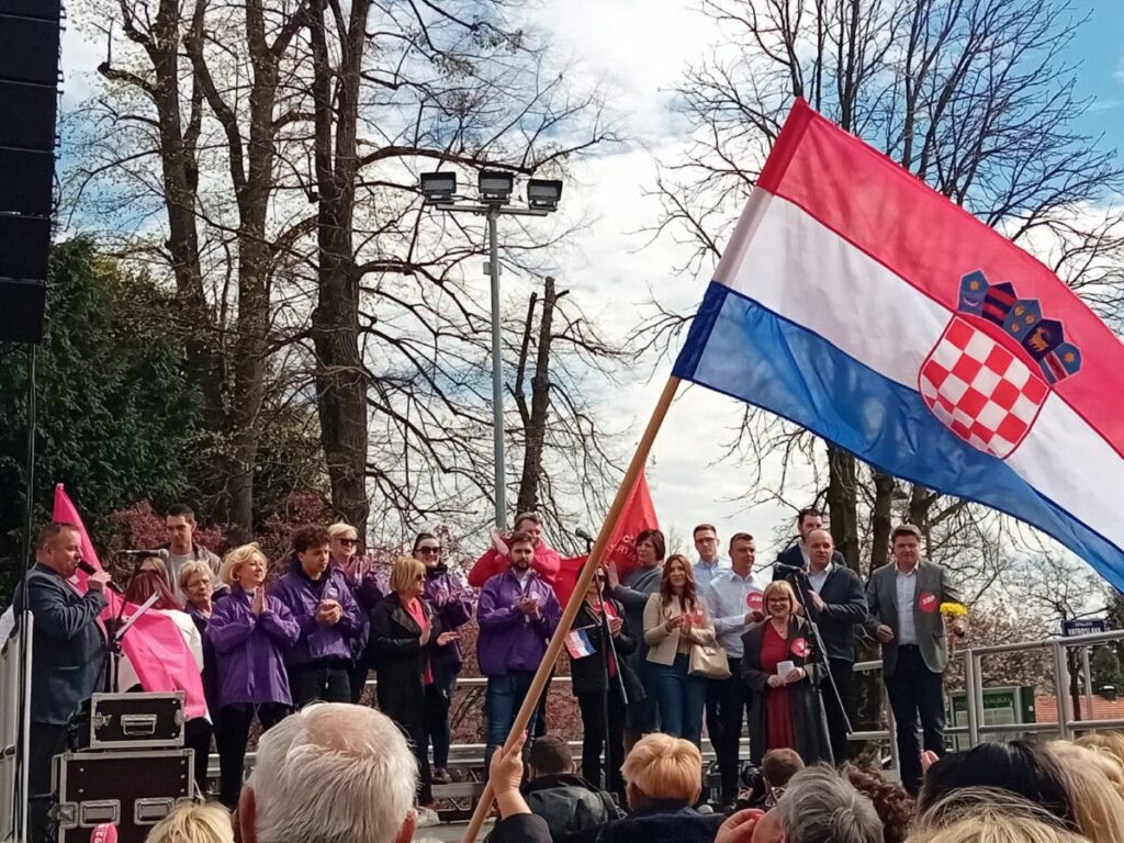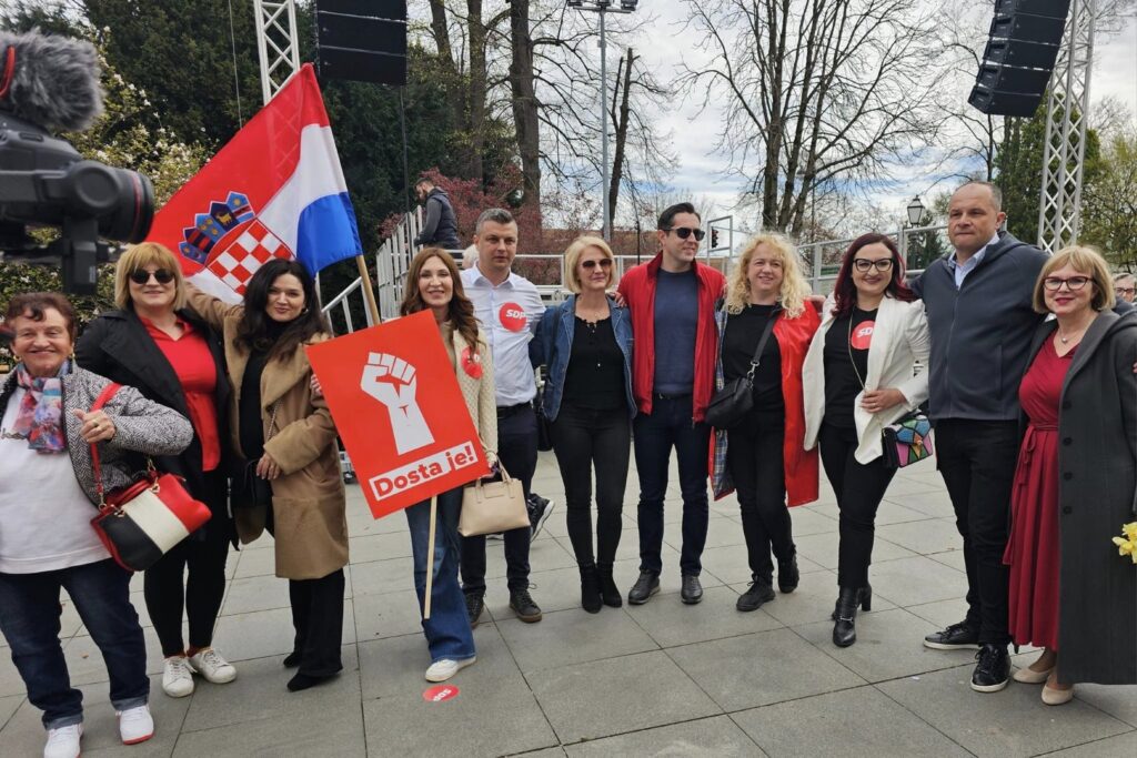 – Kampanja se zahuktava, brane su popustile, rijeka se izlila. Pitaju se neki zašto predsjednik Republike nije dao ostavku. Predsjednik Republike je onaj koji brine o Ustavu, onaj koji zna kada treba nekima reći ne i boriti se za interese svih građana Hrvatske. Da je on dao ostavku, njega bi naslijedio Jandroković. Ali nije on problem, problem je Plenković i banda koja nas vara, koja nas krade i kojoj treba reći ‘Dosta je!’. Nije ovo izbor za moralnu ljepotu, mi znamo tko je s druge strane. Pamet u glavu. Izađimo na izbore i pobijedimo – poručio je s glavne govornice Siniša Hajdaš Dončić.