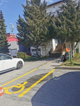 Istovremenu, u centru je iscrtana horizontalna signalizacija za pristup liječniku osoba s invaliditetom.