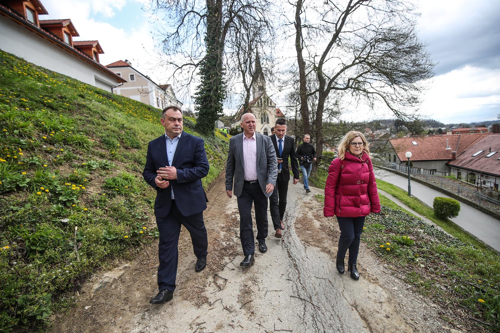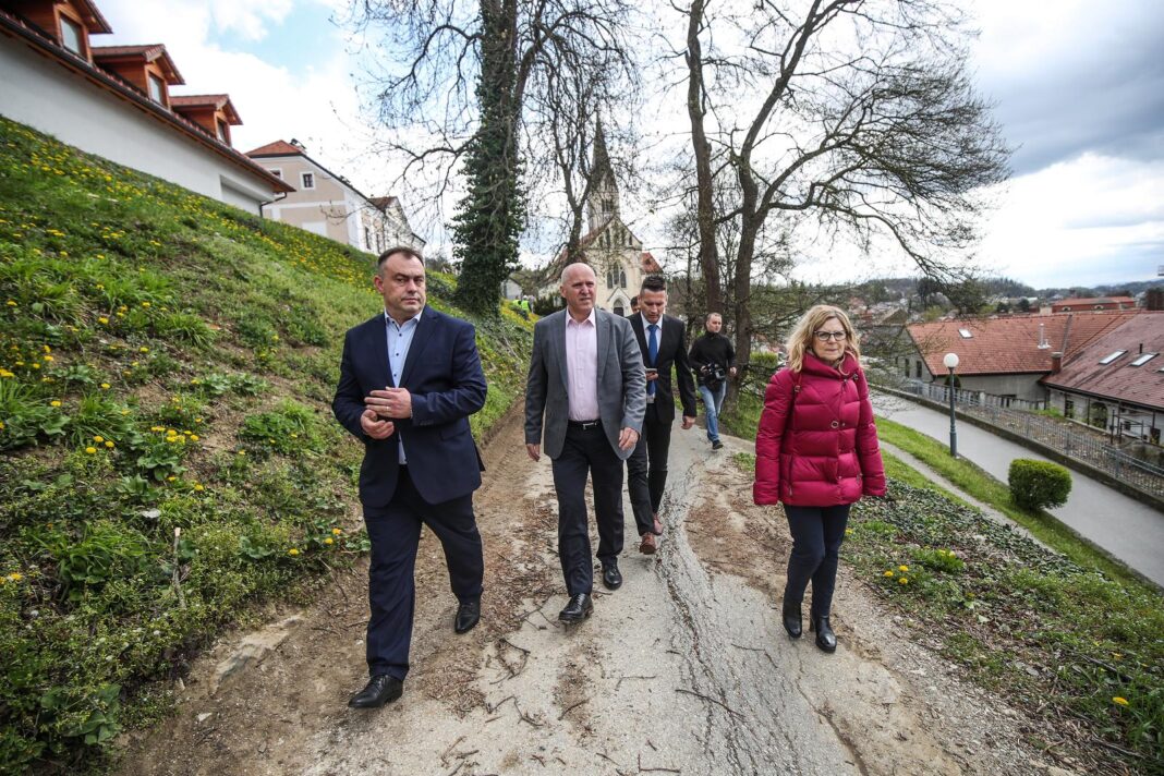 Ministar Branko Bačić s krapinskim gradonačelnikom Zoranom Gregurovićem obišao je radove na sanaciji klizišta u Crkvenoj ulici.