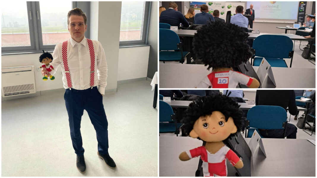 Nezavisni član Županijske skupštine Romeo Vincelj na današnju sjednicu donio je lutkicu Joška Gvardiola.