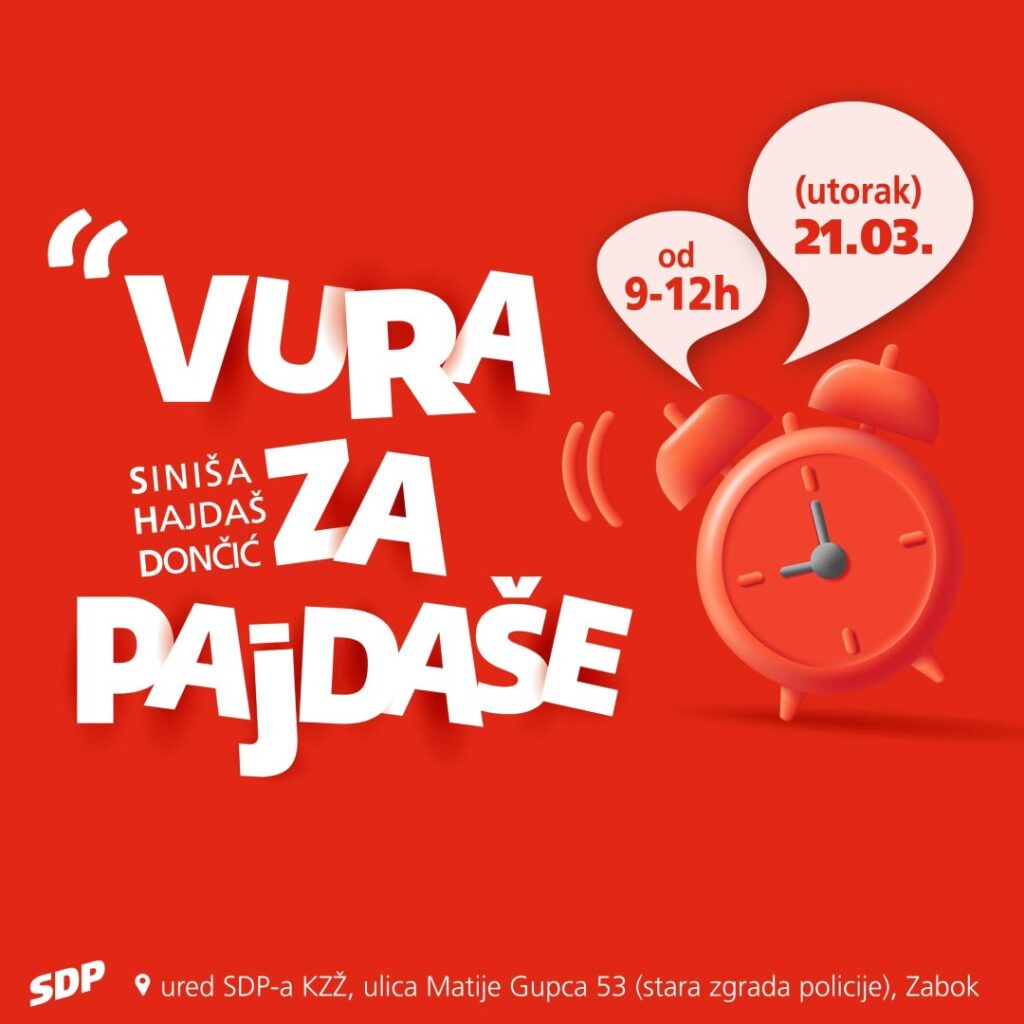 Tradicionalnu Vuru za pajdaše Hajdaš organizira u utorak, 21. ožujka. Od 9 do 12 sati primit će i razgovarati s građanima, saslušati njihove probleme, prijedloge i ideje. Susret je na starom mjestu, u SDP-ovim prostorijama u Zaboku, Matije Gupca 53, u staroj zgradi policije.