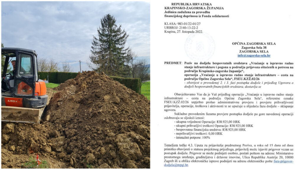 Općini Zagorska Sela odobreno je 838.925,00 bespovratnih kuna za popravak cesta oštećenih u potresu.