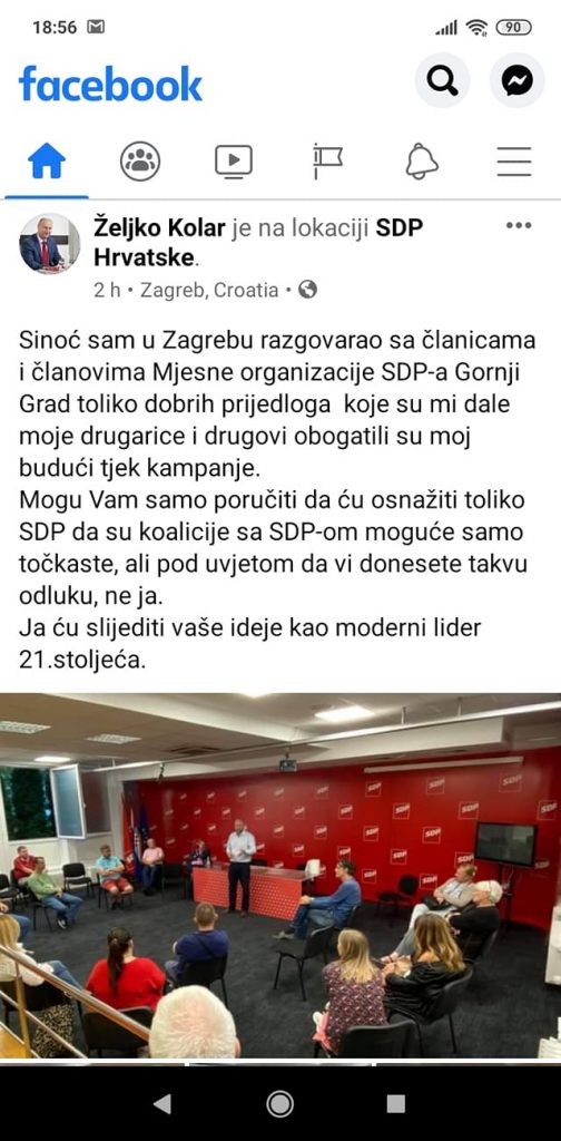 Da nije, barem u autorskom dijelu, vidljivo je na prvu. Kao što je svojedobno Kolar objavio nepismen post na Facebook stranici, koji je kasnije uklonjen, tako su sada SDP-ovci dobili i pismo prepuno pravopisnih i gramatičkih pogrešaka. Uz, naravno, potpuno netočan navod da je bio predsjednik zagrebačke organizacije.