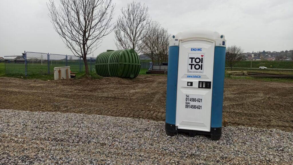 Kada smo nazvali direktora Tomislava Majerovića, uvjeravao nas je da su na gradilištu postavljeni kemijski WC-i, što nije bila istina. Pouzdano znamo da su ponekad radnici i veliku nuždu obavljali u travi, tik uz nogometno igralište.