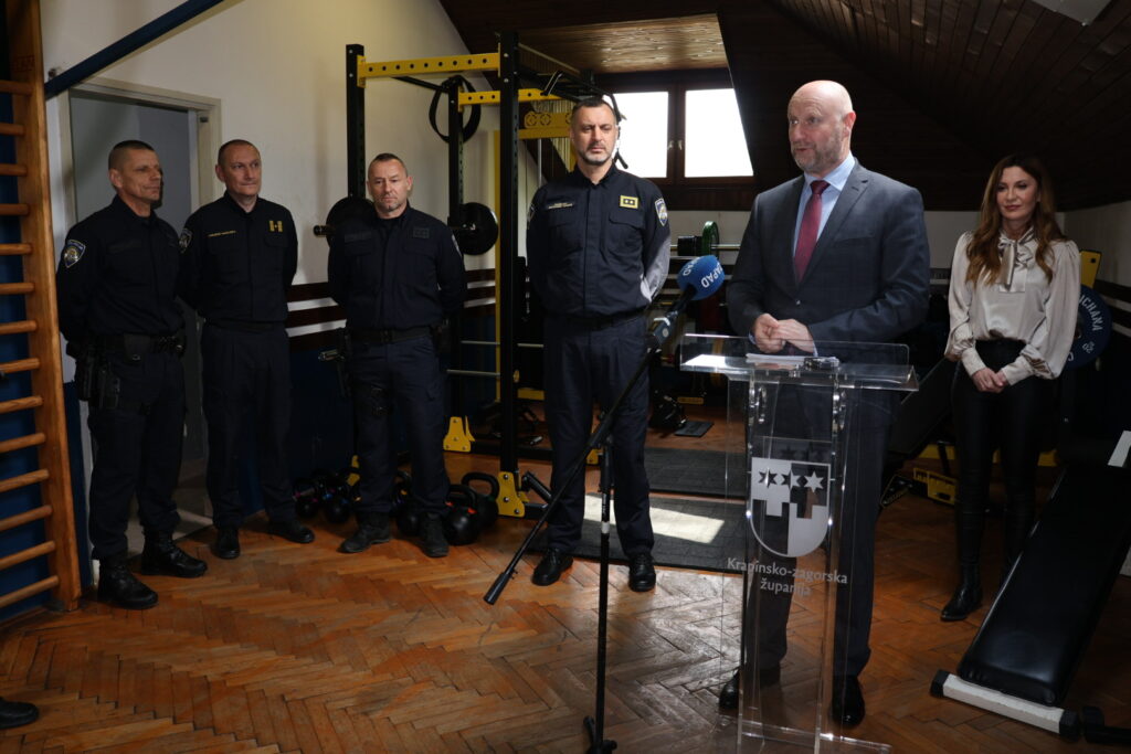 Prostorija za vježbanje interventne policije sada je opremljena spravama vrijednim 11.500 eura. Kupila ih je i policiji donirala Krapinsko-zagorska županija. Danas je interventne policajce obišao župan Željko Kolar.